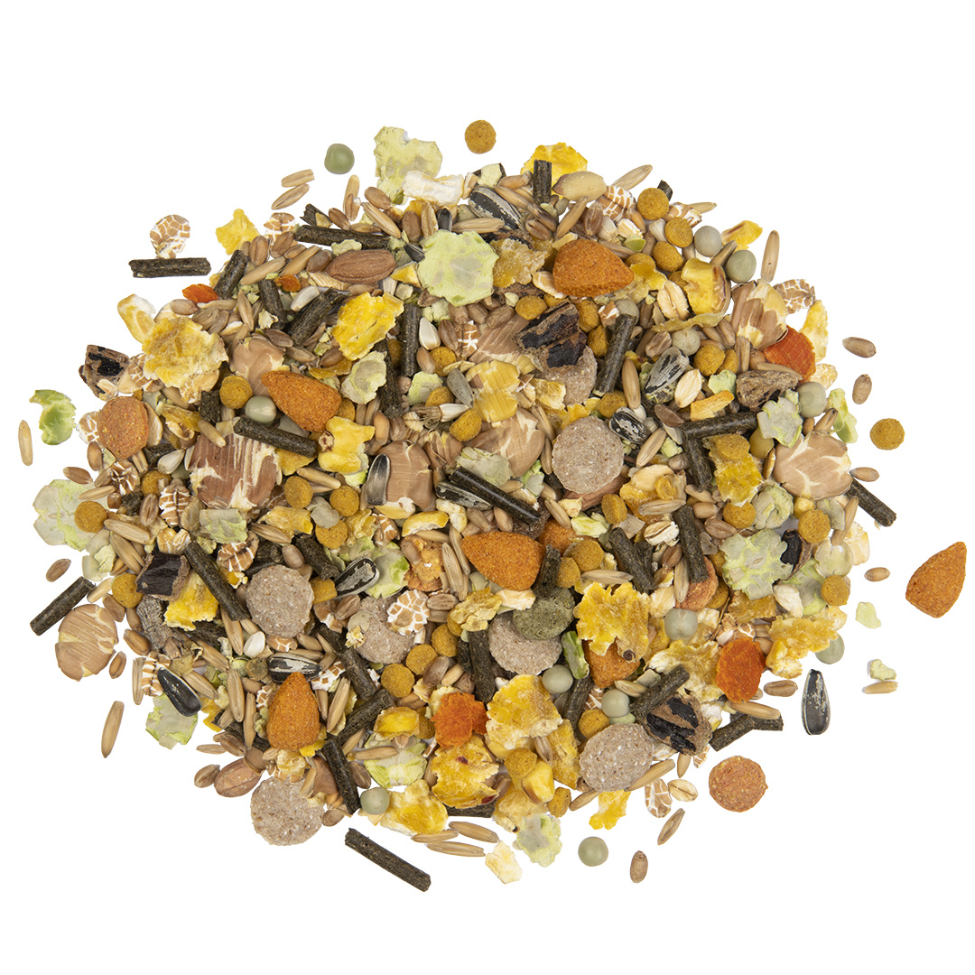 Deze Country muesli voor (mini-)hamsters, ratten, gerbils en muizen en andere omnivore knaagdieren brengt je terug naar eenvoudiger tijden. Goed en evenwichtig voer met wortelen en lekker fruit,de vitamine C.