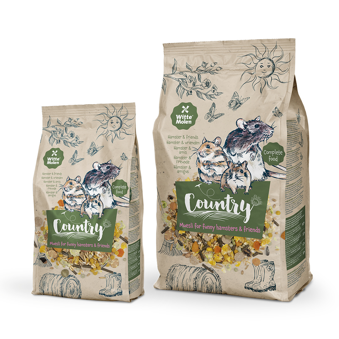 Deze Country muesli voor (mini-)hamsters, ratten, gerbils en muizen en andere omnivore knaagdieren brengt je terug naar eenvoudiger tijden.