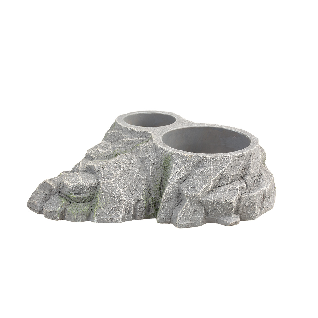 Maak het voeren van je reptielen eenvoudig en stijlvol met de Terra Della Cup Holder Rock – Grijs. Deze praktische houder biedt een natuurlijke en decoratieve eetplek