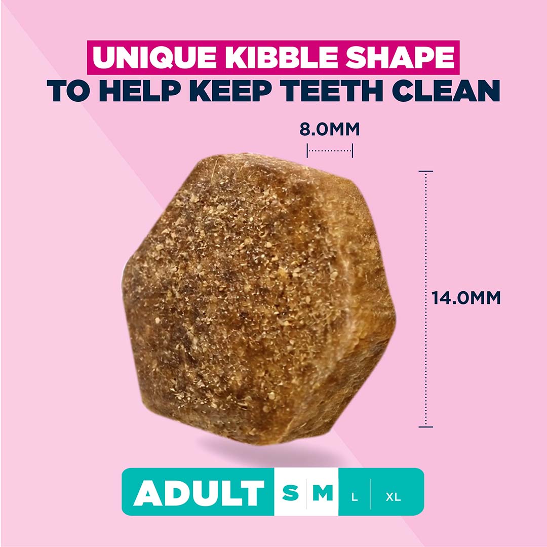 - Unieke brokjesvorm en DentaDefense om de tanden schoon en gezond te helpen houden