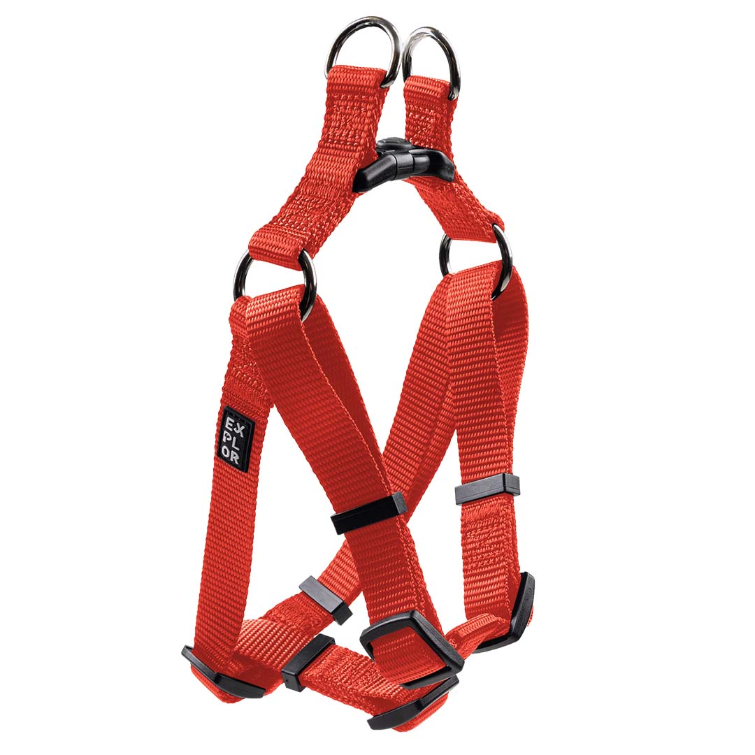 Het EXPLOR Step-In Harnas is ontworpen zodat je hond er simpelweg met zijn voorpoten in stapt. Je trekt het harnas omhoog, klikt de gesp op de rug dicht en je bent klaar om te gaan. Dit maakt het ideaal voor honden die het niet prettig vinden om iets over hun hoofd aan te trekken, én voor baasjes die snel en makkelijk willen vertrekken voor een wandeling. De stevige, slijtvaste nylonband zorgt voor duurzaamheid en langdurig draagcomfort.Het harnas is verstelbaar rond de borst en schouders, zodat het goed en comfortabel aansluit. Het heeft twee bevestigingsringen op de rug voor de leiband. De gesp is uitgerust met een vergrendeling, waardoor deze minder snel kan losschieten.Let op: doordat dit model minder ondersteuning biedt, is het minder geschikt voor honden die sterk trekken. Voor rustige wandelaars is het echter een licht, comfortabel en gebruiksvriendelijk harnas. Trek erop uit, duvoplus EXPLOR heeft alles in huis voor een groot outdoor avontuur. Go out & EXPLOR! Alle modellen zijn beschikbaar in verschillende maten en kleuren.