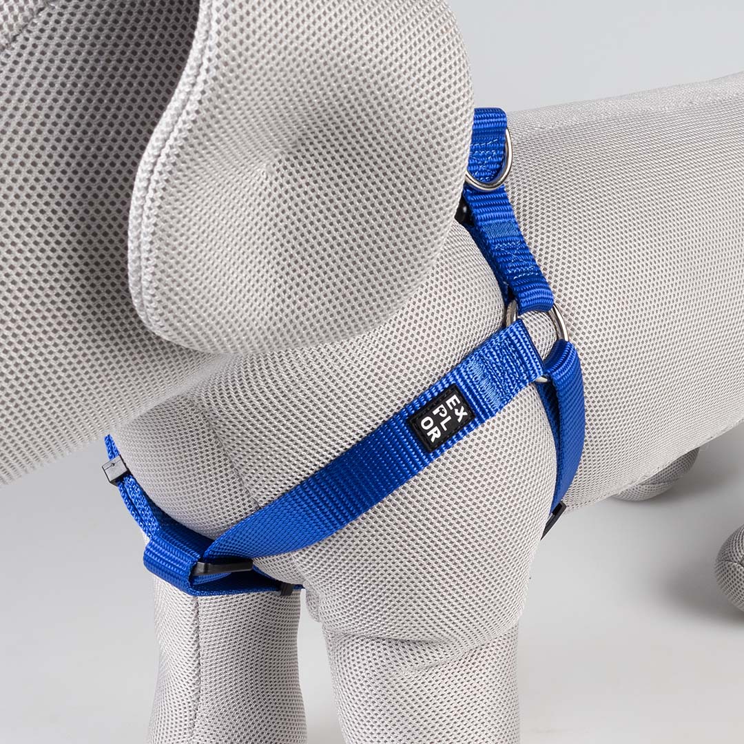 Het EXPLOR Step-In Harnas is ontworpen zodat je hond er simpelweg met zijn voorpoten in stapt. Je trekt het harnas omhoog, klikt de gesp op de rug dicht en je bent klaar om te gaan. Dit maakt het ideaal voor honden die het niet prettig vinden om iets over hun hoofd aan te trekken, én voor baasjes die snel en makkelijk willen vertrekken voor een wandeling. De stevige, slijtvaste nylonband zorgt voor duurzaamheid en langdurig draagcomfort.Het harnas is verstelbaar rond de borst en schouders, zodat het goed en comfortabel aansluit. Het heeft twee bevestigingsringen op de rug voor de leiband. De gesp is uitgerust met een vergrendeling, waardoor deze minder snel kan losschieten.Let op: doordat dit model minder ondersteuning biedt, is het minder geschikt voor honden die sterk trekken. Voor rustige wandelaars is het echter een licht, comfortabel en gebruiksvriendelijk harnas. Trek erop uit, duvoplus EXPLOR heeft alles in huis voor een groot outdoor avontuur. Go out & EXPLOR! Alle modellen zijn beschikbaar in verschillende maten en kleuren.
