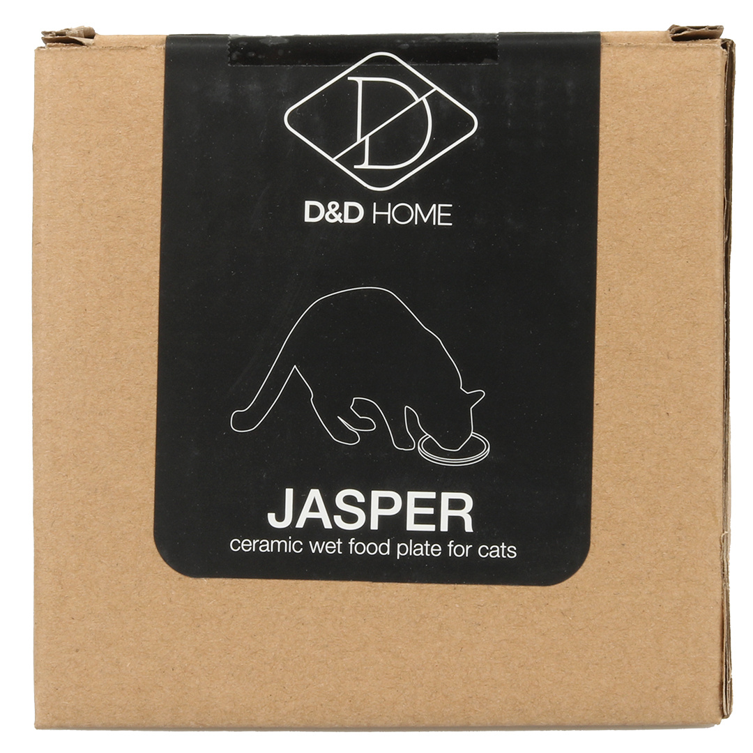 De Jasper eet- en drinkkom van D&D HOME is een uit keramiek vervaardigde schaal afgewerkt met een eigentijds glazuur. Katten vinden het niet fijn dat hun snorharen de randen van de kom aanraken. Deze kom is met deze insteek speciaal ontworpen voor katten. Met een wanddikte van ongeveer 8mm kan de Jasper wel tegen een stootje. De onderkant van de kom is voorzien van rubberen nopjes om krassen op de vloer tegen te gaan.