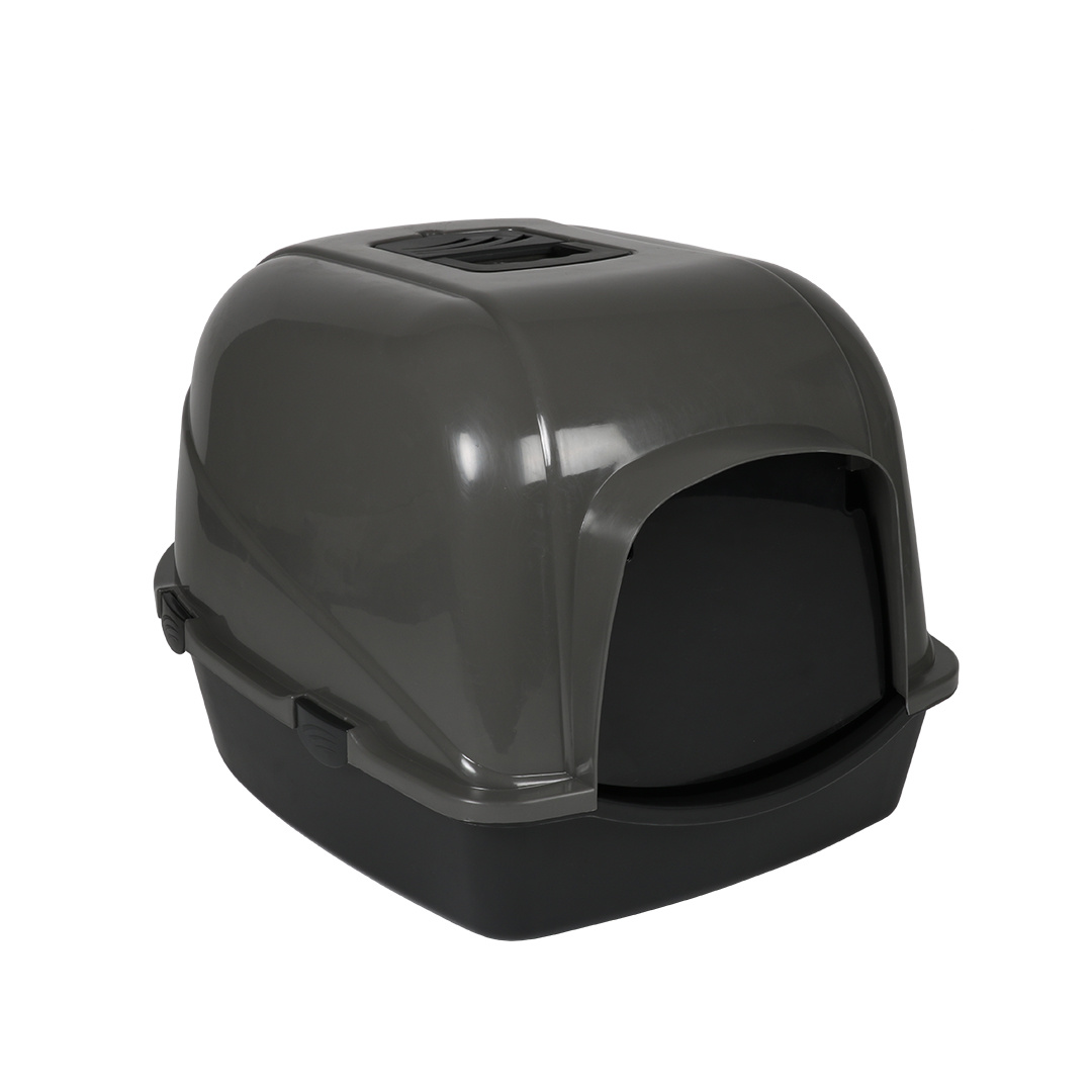 Donkergrijze XXL kattenbak van Europet met koolfilter. Ideaal voor grote of meerdere katten. Stijlvol design en veel ruimte. Afm. 70x56x46 cm.