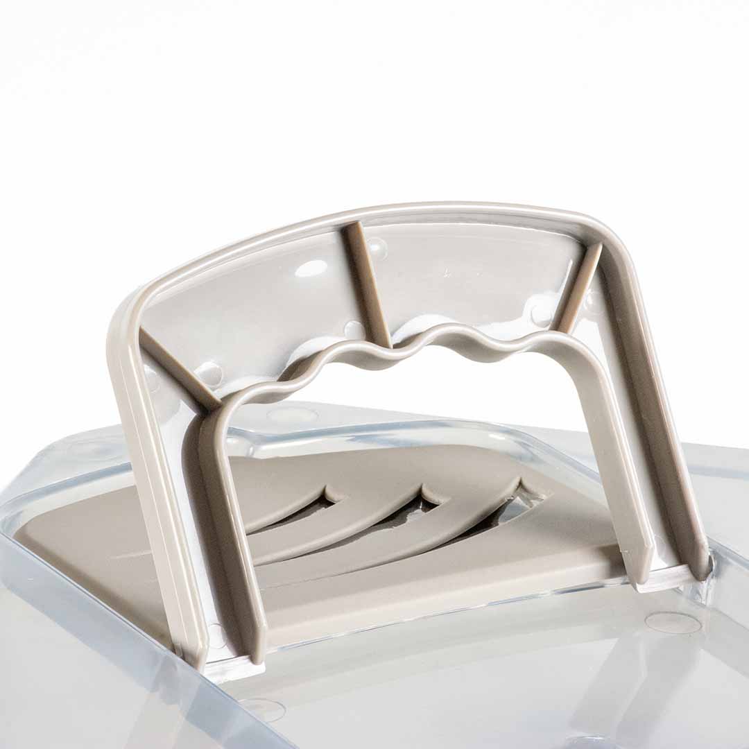 Deze overdekte EBI kattenbak Prism van goede kwaliteit heeft een rooster met een actieve koolfilter, die nare luchtjes vasthoudt en zuivert. De anti-slipvoetjes voorkomen dat de bak verschuift. De innovatieve hoekvorm zorgt ervoor dat de bak niet veel ruimte inneemt in je huis. Het toilethuis heeft een transparant deurtje zodat de kattenbakvulling steeds in de bak blijft, zelfs wanneer je kat schart in de korrels. Op het deksel is er ook een praktische handgreep.