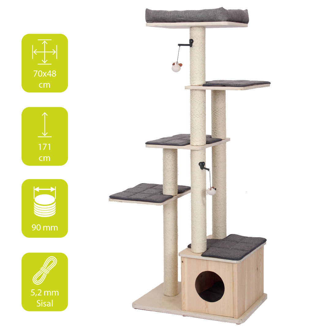 - Met 4 ligniveaus, speelmuisjes en premium sisal