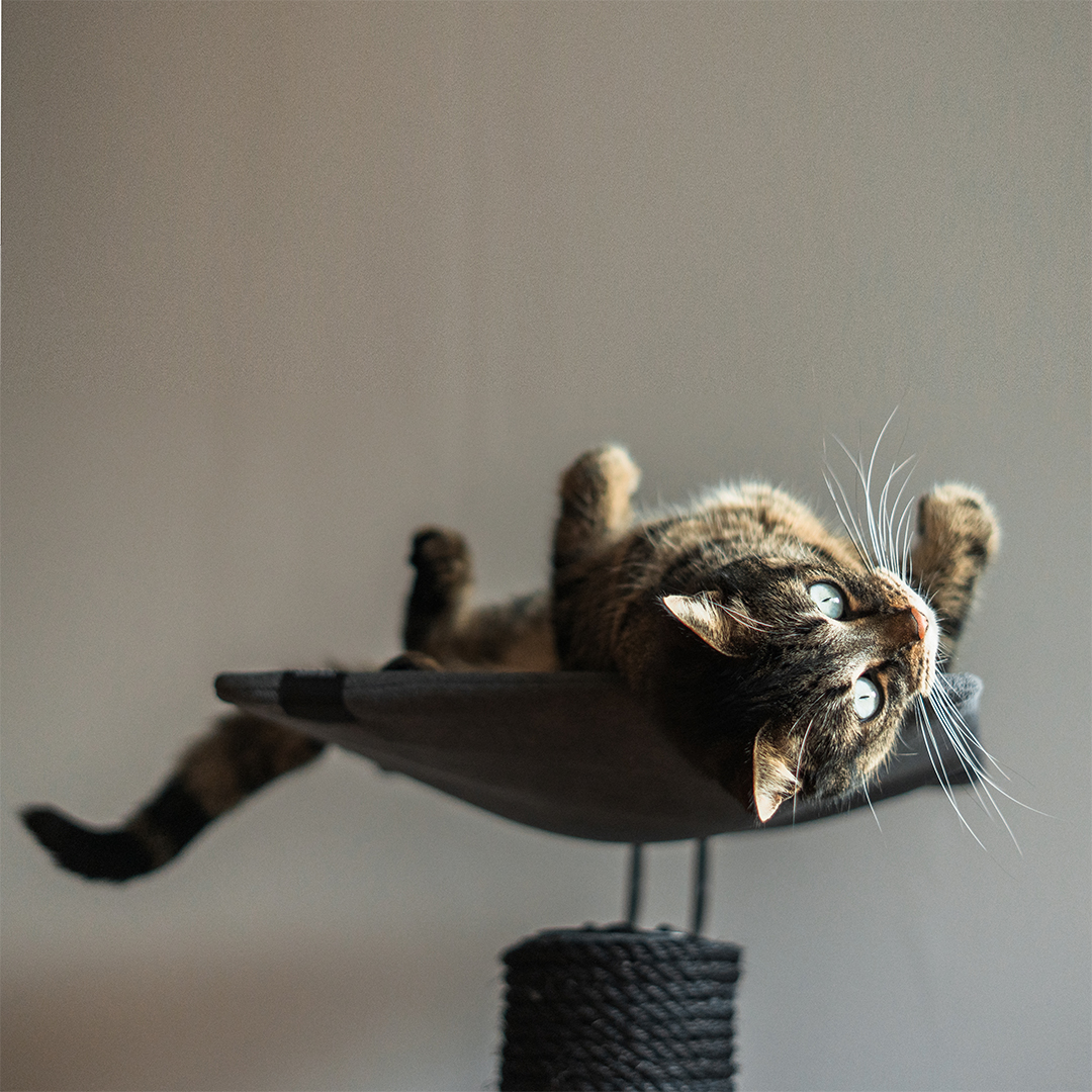 Katten hebben een kwaliteitsvolle krabpaal nodig om hun nagels te scherpen en hun territorium af te bakenen. Sisal is een natuurlijke en zeer sterke vezel die de kat helpt om de schilferige bovenste laag van de nagels te verwijderen. Dat voorkomt dat de nagels ingroeien. Daarom is een krabpaal een must voor elke kat! De ‘Iwaki’-kattenboom van EBI is een Nederlands ontwerp, geïnspireerd door het Japanse zen-concept. De esthetiek van deze paal geeft kalmte en minimalisme weer. In onze Japans geïnspireerde serie krabpalen is deze paal de definitie van eenvoud. De paal is bekleed met sisal van 10 mm dik en komt zo tegemoet aan de krabbehoefte van uw kat. Bovenaan bevindt zich onze zelf ontworpen stalen hangmat met wasbare hoes. Deze paal is bekleed met stof die vaak voor meubels wordt gebruikt en past dus naadloos in uw interieur. Het is de stijlvolste krabpaal die u momenteel op de markt kunt vinden.
