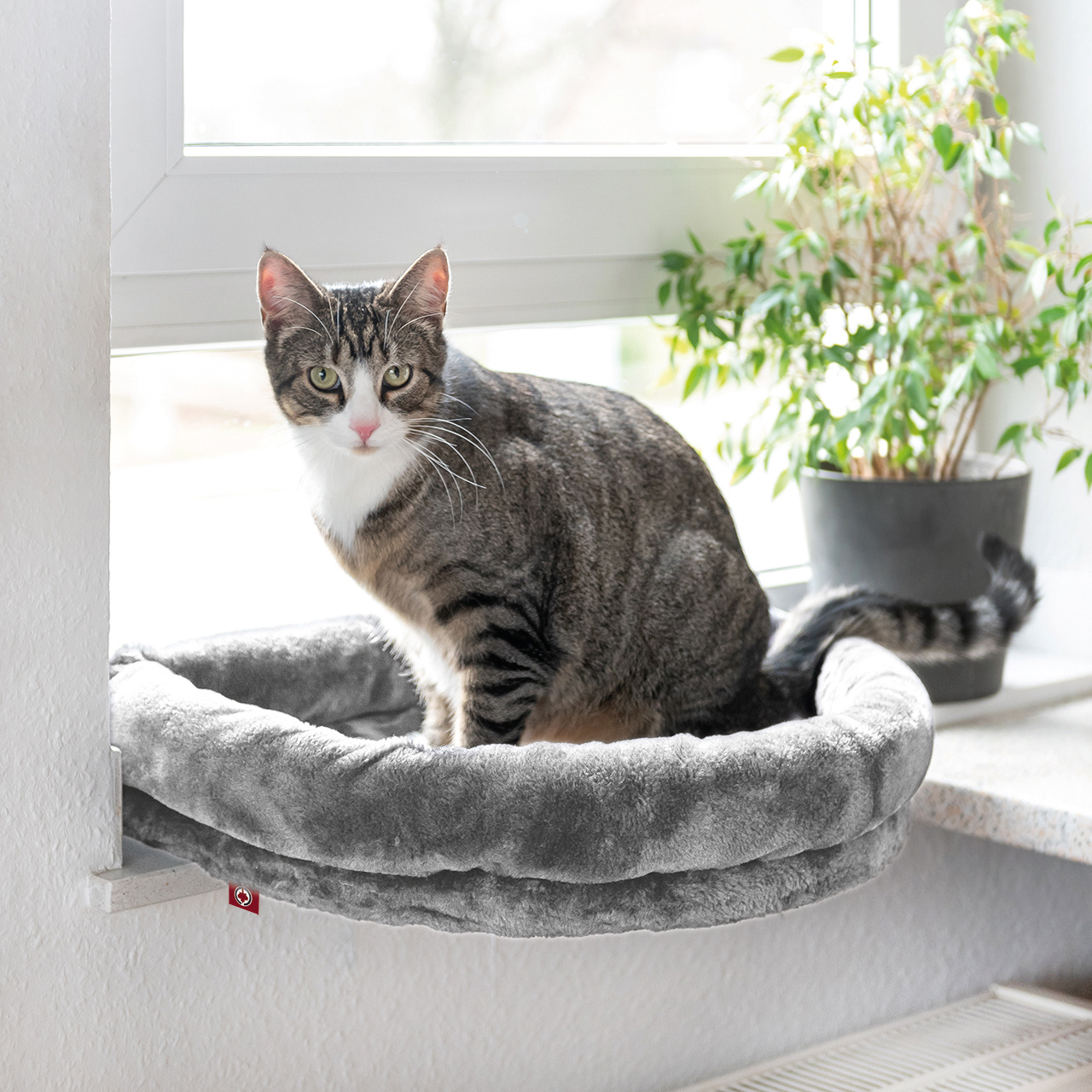 De extra zachte pluche is perfect om te ontspannen en te dutten. Het vensterbankbed kan eenvoudig worden bevestigd met behulp van praktische schroefklemmen aan elke vensterbank en glijdt daardoor niet weg.