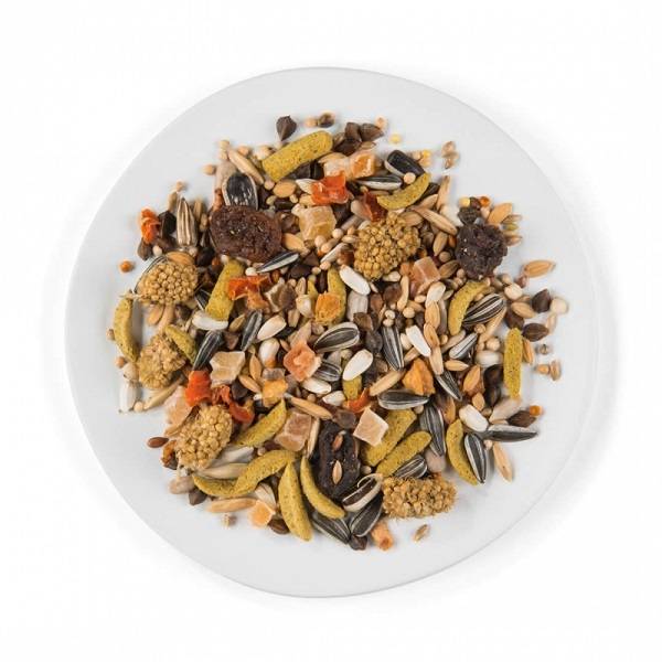 Eiwitrijke samenstelling en lijnzaad voor glanzende veren en een vlotte rui. De aanwezige prebiotica draagt bij tot een gezonde spijsvertering. Stukjes oesterschelp bevorderen bovendien de spijsvertering en zijn een uitstekende bron van calcium. De evenwichtige samenstelling, toegevoegde vitamines en sporenelementen zorgen voor extra vitaliteit. Zonder kunstmatige kleurstoffen en bewaarmiddelen