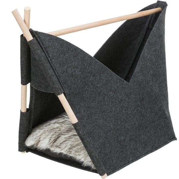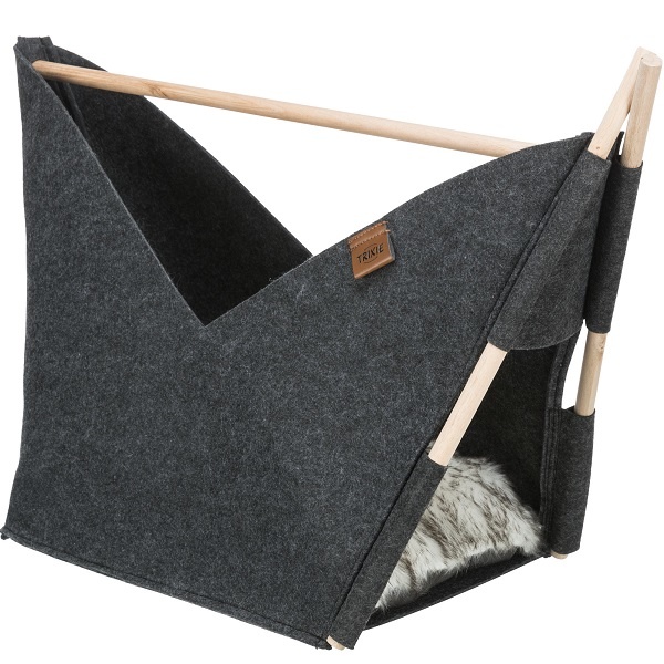 Schuilplaats soft edition gemaakt van vilt. Omkeerbaar kussen met overtrek van langharig pluche, geweven stof en polyester fleece vulling. Mag gewassen worden in de wasmachine op max 40 graden. Schuilplaats is inklapbaar.