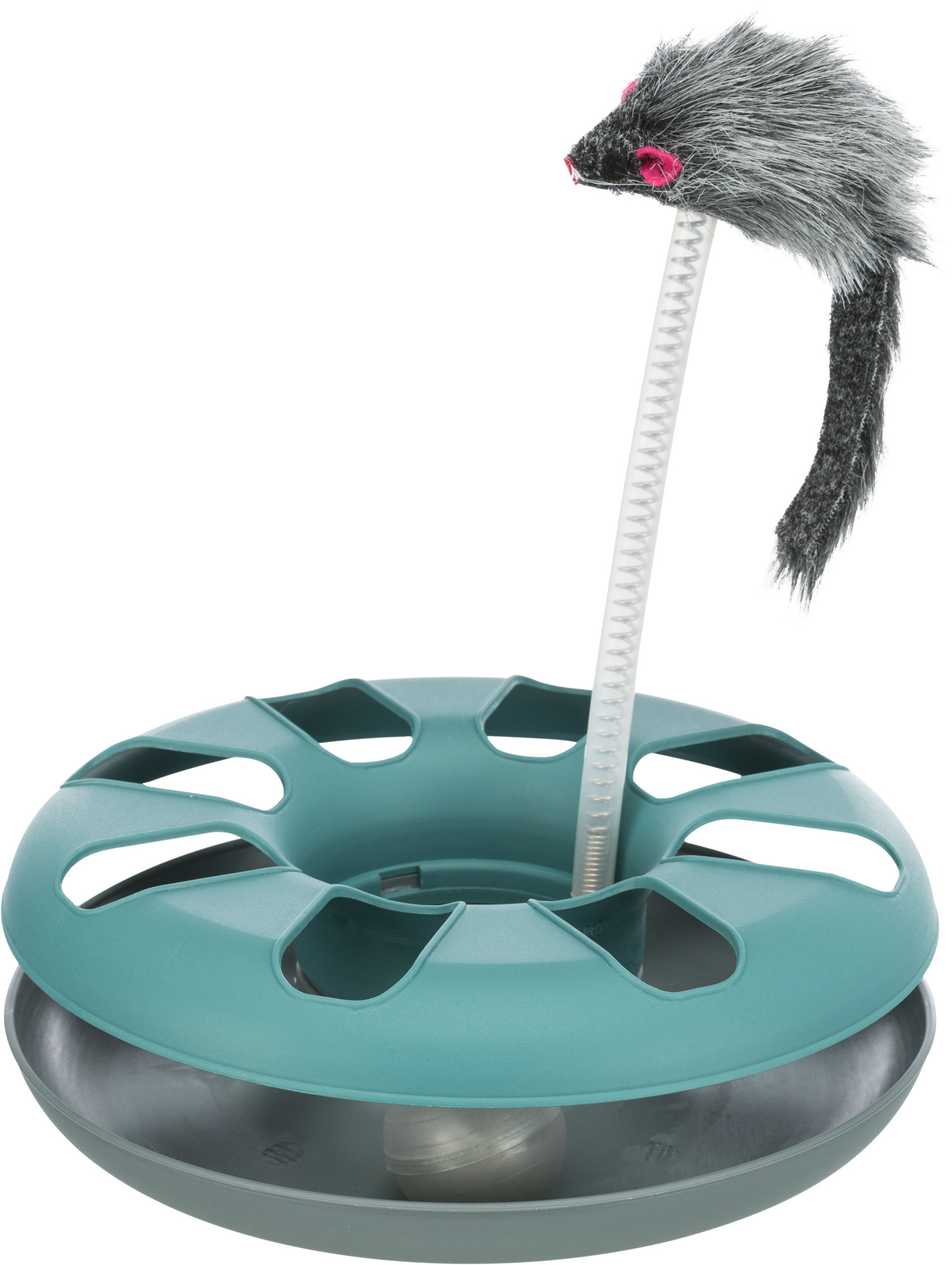Leuk kattenspeelgoed waar je kat het balletje kan vangen. Als extra is er bovenop dit kattenspeelgoed een muis geplaatst op een spiraalveer. Het kattenspeeltje is gemaakt van kunststof.