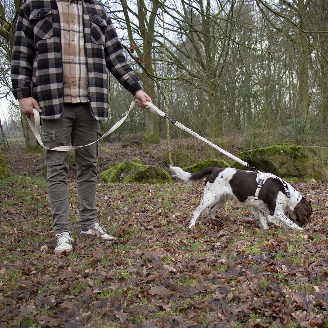 Trek er op uit met de EXPLOR Ultimate Fit 2in1 Leash, een comfortabele, duurzame leiband die tijdens een wandeling onmiddellijk aanpasbaar is aan de omgeving. Deze leiband heeft een totale lengte van 1.80 meter, ideaal voor een wandeling in een bekende omgeving met een hond die je onder controle hebt. In de laatste 60 cm van deze riem zit een anti-schok gedeelte verwerkt, onverwachtse bewegingen vanuit de hond worden hiermee gedempt. De leiband kan ingekort worden door het anti-schok gedeelte los te koppelen zodat je meer controle hebt in het drukke verkeer. Zo blijft er een korte riem met een totale lengte van 1.20 meter over voor een meer gedisciplineerde wandeling. Aan de riem zitten drie handgrepen met zacht neopreen om zo sneller de hond kort te kunnen houden. Over de totale lengte van de leiband zitten twee reflecterende stikselbanenverwerkt voor een optimale zichtbaarheid in het verkeer. Go out & EXPLOR!
