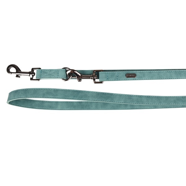 Hondenriem gemaakt van kunstleder. 3-voudig verstelbaar om de lijn kort, lang of handenvrij te gebruiken. De karabijnhaken hebben een glanzende donkergrijze afwerking.