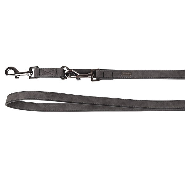 Hondenriem gemaakt van kunstleder. 3-voudig verstelbaar om de lijn kort, lang of handenvrij te gebruiken. De karabijnhaken hebben een glanzende donkergrijze afwerking.