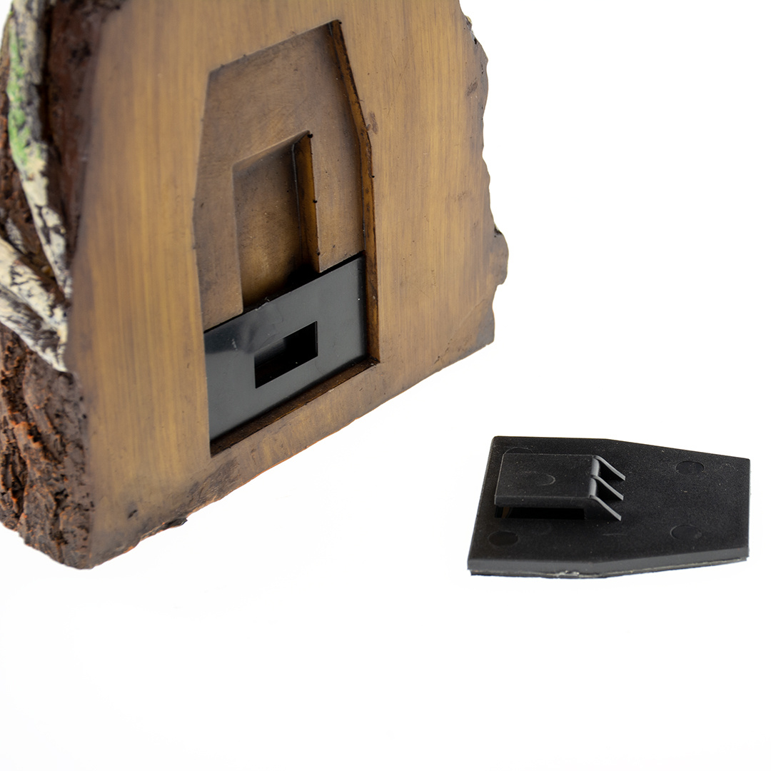 Met deze zwevende plantenhouder van Terra Della kun je een echte plant op elke wand van het terrarium bevestigen met de natuurlijke look van een boomstronk. Ideaal om een kleurrijke jungle te creëren. Je kunt deze plantenhouder eenvoudig bevestigen met de bijgeleverde super sterke 3M tape met haakbevestiging. De plantenhouder kun je van de bevestigingsplaat afhalen om water te geven bijvoorbeeld. waarschuwing de tape is voor eenmalig gebruik, bepaal vantevoren goed waar deze moet komen.